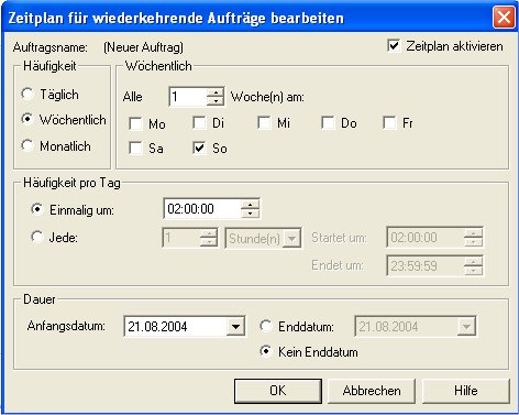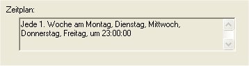 Zurück zu den Einstellungen für unser Beispiel. Wir müssen noch den Zeitplan verändern, denn wir wollen, dass die Datensicherung von Montag bis Freitag immer um 23:Uhr ausgeführt wird. Mit einem Klick auf "Ändern..." öffnen Sie den Zeitplan.
