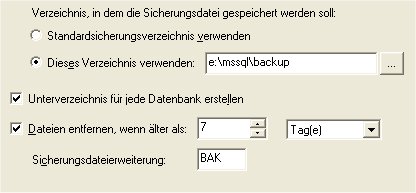 Der SQL Server legt bei der oben gewählten Einstellung die Sicherungsdateien auf einem Laufwerk ab. Diese Dateien können dann von der Datensicherungslösung mitgesichert werden.