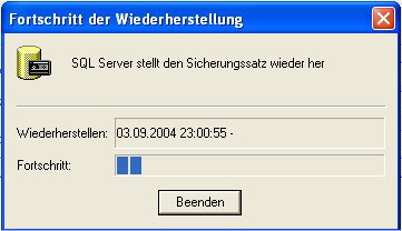 Je nach Umfang der Datenbank dauert es ein wenig und schon ist die Datenbank wiederhergestellt...