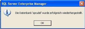 Mit einem Klick auf "Ok" wird die Datenbank wiederhergestellt.